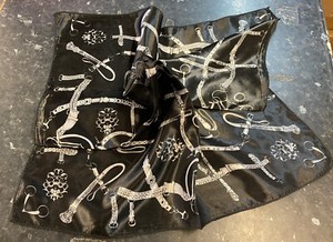 Black White Belts Straps 50cm Small Neck Bandana Scarf Satin/silk Feel Fashion