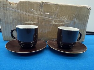 Chocolate Brown And White gold rim Demitasse Espresso 12 Cups And 12 Saucers