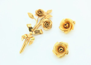 AlphaTJ Vintage Gold Plated Rose Brooch Clip On Earring Sets Elegant