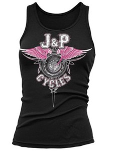 Women's Black Tank Top XL J&P Cycles® Wing Pinstripe Ribbed Cotton Motorcycle O1