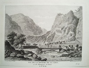Linthal Glarus Lint Switzerland REAL OLD Copperplate by Zurlauben 1780 Rare!