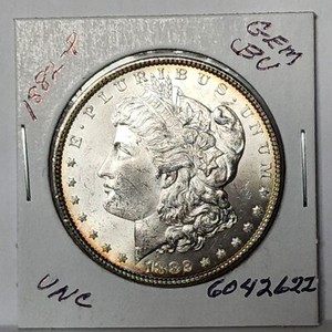 1882 1882-P MORGAN SILVER DOLLAR BLAST WHITE GEM BU TONED RIM #6042622-95U