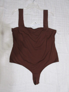 Marjie Square Necked Wide Strap SEXY Brown Bodysuit, Size Large, NEW WITH TAGS