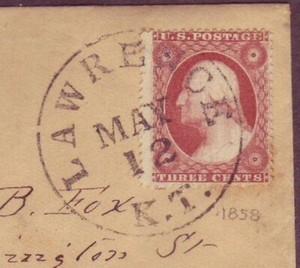 LAWRENCE, K.T. - KANSAS TERRITORIAL (1858?) Cover to REVEREND in BOSTON, MASS !!