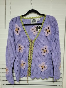 Storybook Knits Large Purple Cardigan Sweater With Flowers & Beads Original Tag