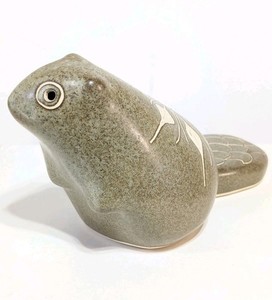 STRAWBERRY HILL Werkshop Studio Pottery Sgraffito Beaver Figure Canada 1970's