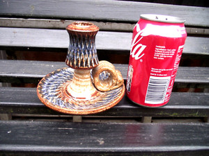 Hand Crafted Studio Pottery Go to Bed Chamberstick Candlestick Holder Marked