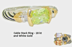 CZ Ring 3 row yellow gold 18KT Premier Designer Quality Wide Band Size 7 new