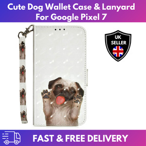 Cute Dog Pug Wallet Case with Lanyard For Google Pixel 7 Protection Style
