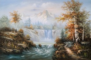 Waterfall Landscape, #4F-2, 36x24 - 100%Hand Painted Oil Painting on Canvas,