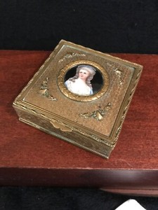 EXQUISITE ANTIQUE FRENCH BRONZE ORMOLU JEWELRY BOX W/ IMAGE ON PORCELAIN-487