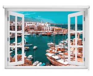 Kyrenia Harbour North Cyprus Window View Printed Picture Blackout Roller Blinds