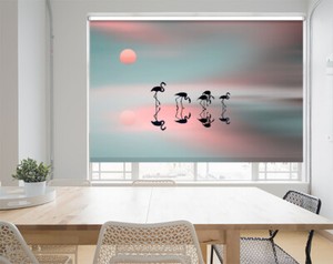 Flamingo Family Silhouette Pink Printed Picture Window Photo Roller Blind 971832
