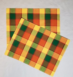 Set Of 2 Fall Color Plaid Placemats 19 × 14 Inch Rectangle, Autumn Earth Tone
