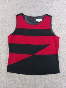 Studio I Size 18 Womens Sleeveless Shirt Red Black Geometric Polyester Lined