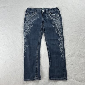 True Religion Indigo Cathedral Denim Capri Size 26 Orig $196