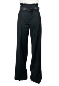 Viktor & Rolf 100% Wool Wide Leg Cuffed Paper Bag Waist Pants Black IT42