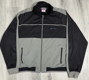 Vintage Champion Track Jacket Men's Large Black and Gray Color Block Full Zip