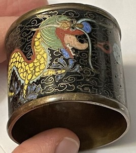 Antique Enamel Cloisonné Chinese Imperial Double Dragon Round Napkin Ring