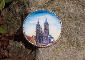 SMALL VINTAGE HAND MADE ENAMEL BADGE # ST. GALLEN SWITZERLAND