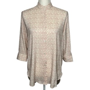 Amina Rubinacci Button Up Shirt Size 42 Small Pink Stretch Silk 3/4 Sleeves