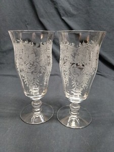 Set Of 2 Stunning Vintage Floral Etched Champagne/Low Sherbet