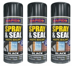 3x Black Leak Stop Spray & Seal Fix Waterproof Sealant Mastic Gutter Roof--300ml
