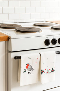 Winter Robin Design Set of 3 Christmas Kitchen Tea Towels New Festive Kitchen