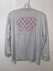 Ivory Ella T-Shirt Womens Small Faded Blue Purple Graphic Long Sleeve *Flaws