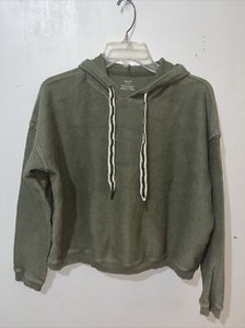 Eddie Bauer Hooded Top Womens XL Red Blue Striped Rib Cowl Neck Drawstring L/S