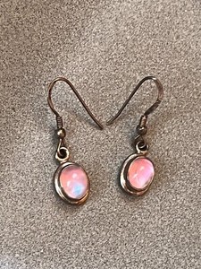 Estate Small Oval Moonglow Stone in 925 Marked Silver Frame Dangle Earrings for