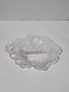 Vintage Glass Cabbage Leaf Frosted Clear Divided Dish