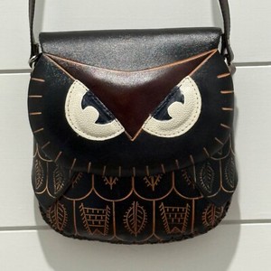 Wise Owl Crossbody bag leather owl brown and black pebbled leather