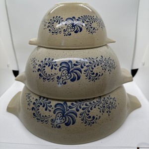Set 3 Vintage Pyrex Homestead Blue Floral Cinderella Nesting Bowls 441 443 444