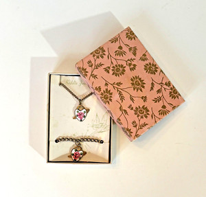 Vtg Child's Necklace & Bracelet Enamel Heart Lock Key Nostalgic Kiddie Jewelry