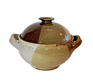 Art Pottery Casserole Dish Tureen Color Block Signed 9" Wolfs Point Studio 1984