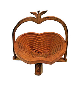Rustic Wood APPLE Shaped Basket Trivet 10.75" Handmade VTG Country Harvest Fall
