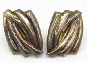 Vintage Taxco Mexico 925 Sterling Silver Bamboo Chutes No Stone Clip on Earrings