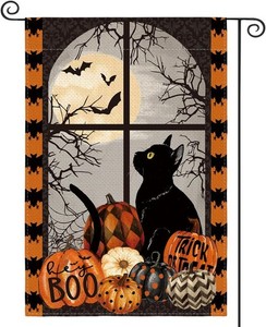 Halloween Pumpkin Trick or Treat Boo House Flag12x18 Inch Double Sided, Black