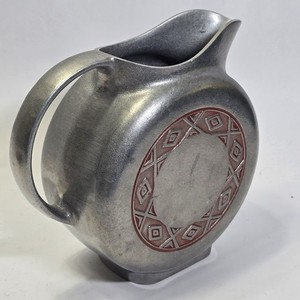 Vintage Wilton Armetale Reggae Pattern Pewter Pitcher Geometric Etched Design US