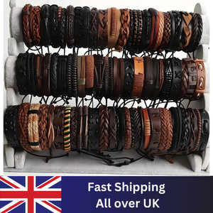 20Pcs Braided Leather Bracelets Men Women Tribal Handmade Wrap Wood Beads Cuff