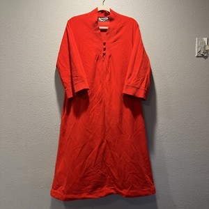 Vintage 80s Vassarette Bright Red Fleece 3/4 Sleeve Zip House Dress Sz S/M EVC
