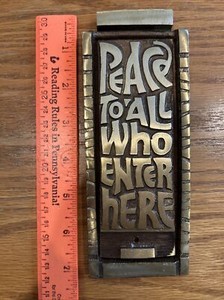 Mid Century Solid Brass Door Knocker “Peace To All Who Enter Here” 1969 Israel
