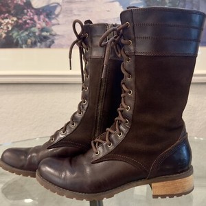 Timberland Boots Womens 68 Brown Leather Suede Combat Riding Weathered Heel