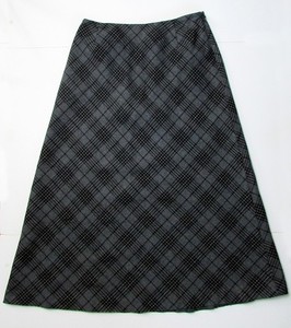Eddie Bauer Wool Blend A-Line Midi Skirt Grey Black Plaid Women's Career size 14