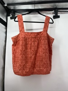 Anthropoligie Top Large Womens Orange Sylvia Embroidered Geometric Button Back