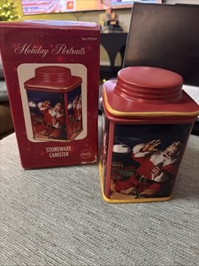 Coca Cola Santa Claus Stoneware Canister Christmas Cookie Holiday Red