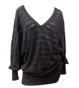 MURPHY Long Sleeve V Neck Sweater SZ Large L Black Striped 011