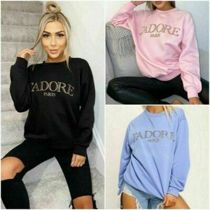 Ladies J'Adore Paris Slogan Print Sweatshirt Woman Oversized Sweater Jumper Top