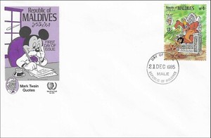 Disney Cartoons Mark Twain All Kings Is Mostly Rapscallions Maldives FDC 1985